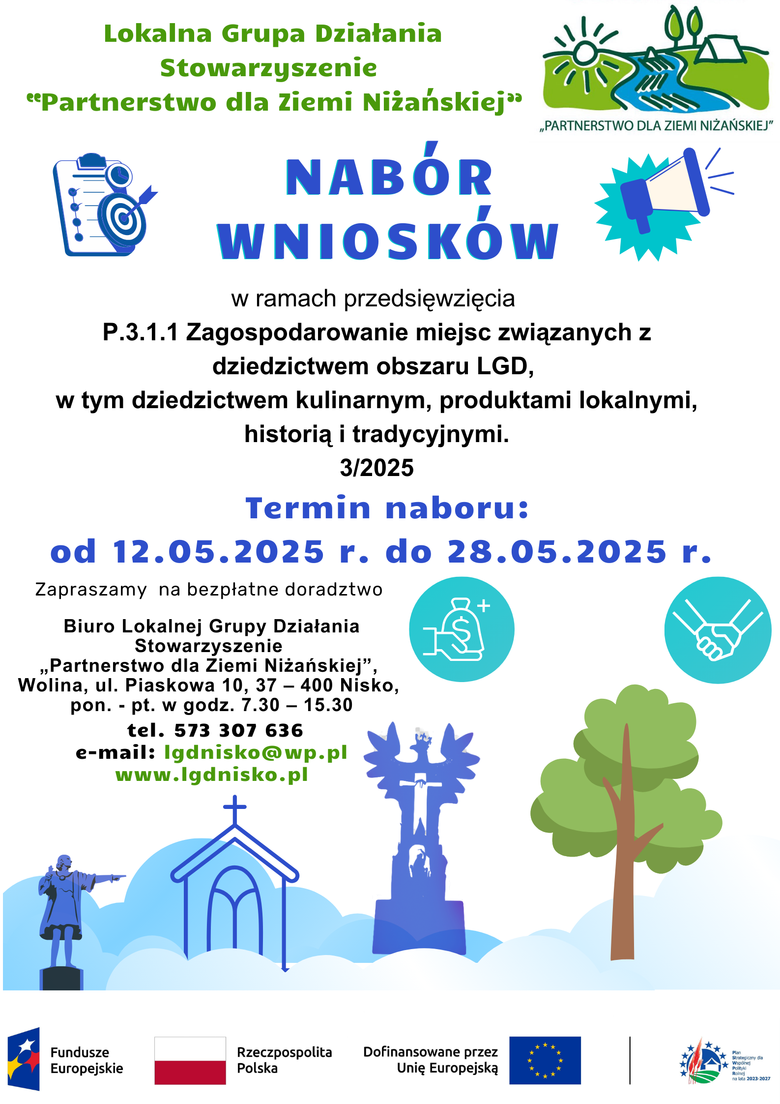 Szczegółowych informacji na temat warunków ubiegania się o wsparcie udzielają pracownicy biura LGD Stowarzyszenie „Partnerstwo dla Ziemi Niżańskiej”,Wolina ul. Piaskowa 10, 37-400 Nisko, tel. 573 307 636 lub kontakt e-mail: lgdnisko@wp.pl